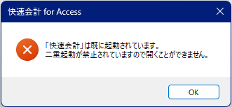 快速会計を正常に終了しなかった場合、次に起動しようとすると、上の画像が表示されて、プログラムを開くことができません。
